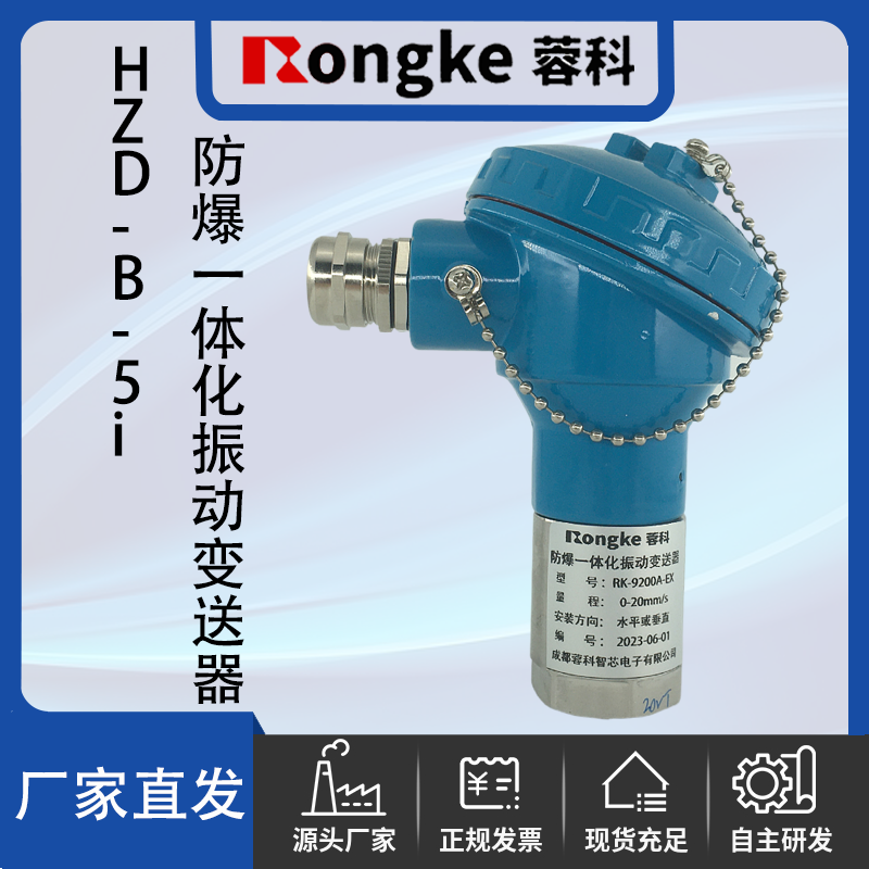 防爆一体化振动变送器:将磁电式振动传感器、精密测量电路集成在一起,构成高精度振动测量系统,该变送器可直接连接DCS、PLC或其它设备,是测量风机、电动机、水泵等工厂设备振动的理想选择。