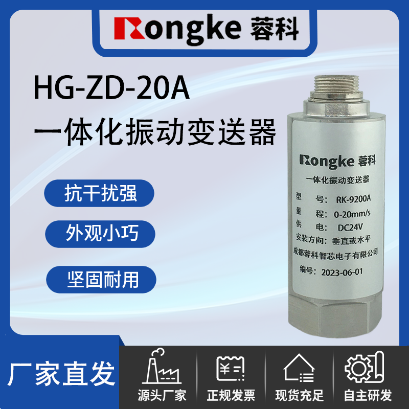 一体化振动变送器:将磁电式振动传感器、精密测量电路集成在一起,构成高精度振动测量系统,该变送器可直接连接DCS、PLC或其它设备,是测量风机、电动机、水泵等工厂设备振动的理想选择。