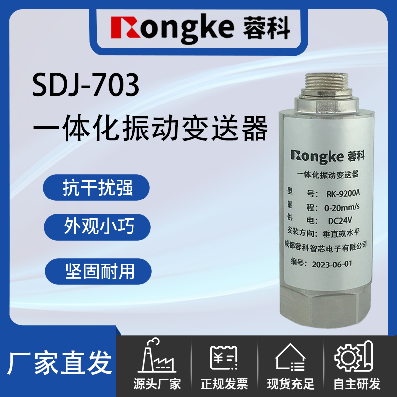 一体化振动变送器:将磁电式振动传感器、精密测量电路集成在一起,构成高精度振动测量系统,该变送器可直接连接DCS、PLC或其它设备,是测量风机、电动机、水泵等工厂设备振动的理想选择。