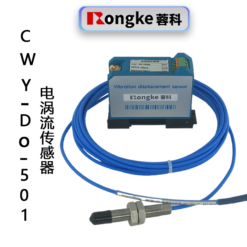 CWY-DO-501电涡流传感器的原理是,通过电涡流效应的原理,准确测量被测体(必须是金属导体)与探头端面的相对位置,其特点是长期工作可靠性好、灵敏度高、抗干扰能力强、非接触测量、响应速度快、不受油水等介质的影响,常被用于对大型旋转机械的轴位移、轴振动、轴转速等参数进行长期实时监测,可以分析出设备的工