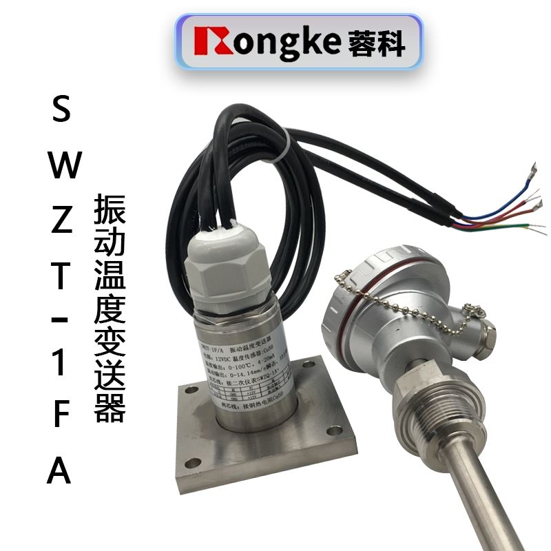 SWZT-1FA振动温度变送器是一种小型一体化、独立两线制、探头式变送器。它的两路4~20mA输出信号分别与被测物体振动值和测量点温度变化成正比。