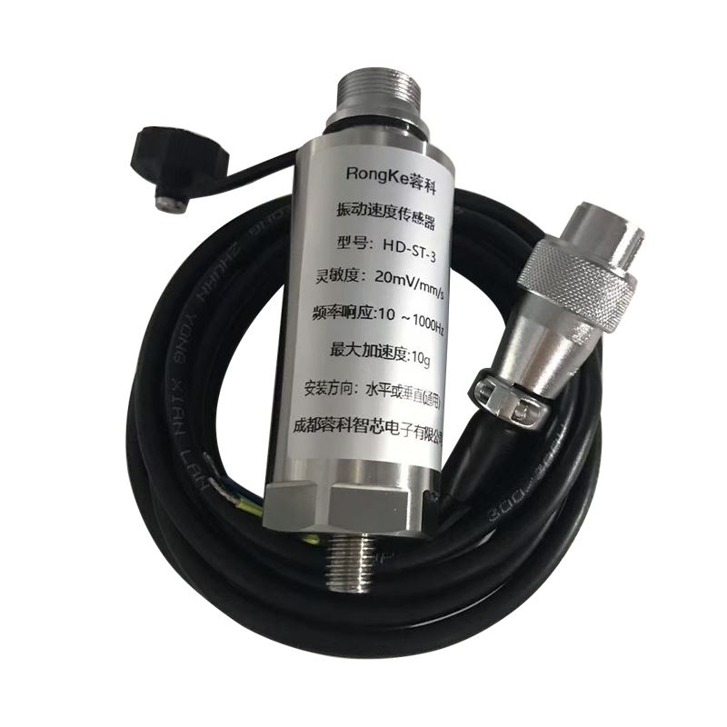 HD-ST-3振动速度传感器 主要用途:振动速度传感器主要安装于风机、水泵、电机等旋转机械的轴承座瓦上,用来监控被测设备的轴承运行情况,在轴承不良的前期能准确的提前预判,可避免设备的进一步损坏。也可用于各种机床、数控中心的工装夹具、振动筛、送料机皮带运行稳定状态、破碎机状态监控等系列设备。它可用于测量轴承座、机壳或结构的振动(相对于惯性空间的绝对振动)。它直接安装在机器外部,使用维护方便。